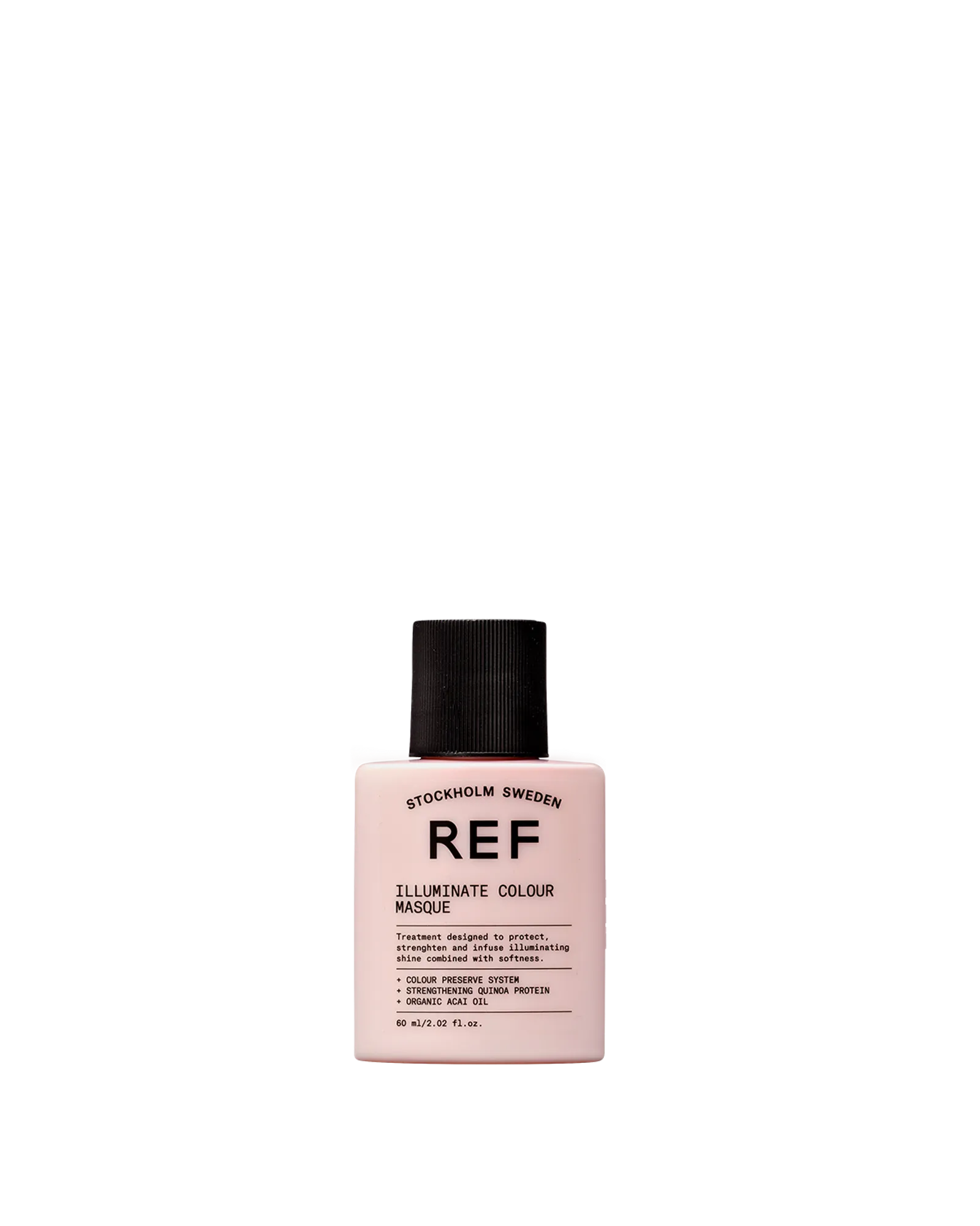This product is sold as part of an offer and comes in previous design packaging. Protect and enhance your color-treated hair with REF Illuminate Colour Masque. Formulated with Color Preserve System™ and antioxidant-rich organic acai oil, this masque locks in color vibrancy while delivering intense moisture. It strengthens the hair fiber, prevents color fade, and shields against environmental damage. The result is brilliantly shiny, supple, and vibrant hair with lasting salon-fresh color and deep nourishment after every treatment.