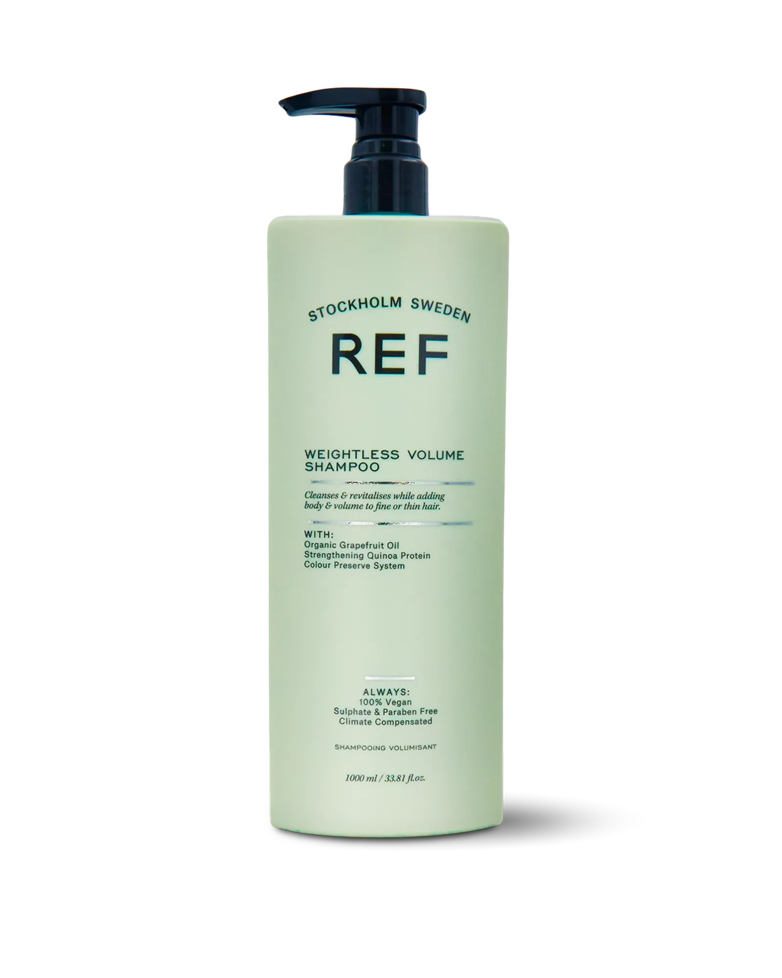 REF Weightless Volume Shampoo offers a refreshing cleanse while delivering noticeable volume and body to fine or thin hair. Infused with botanical extracts, it enhances fullness without leaving residue or heaviness. Quinoa proteins strengthen hair strands while organic grapefruit oil invigorates the scalp, promoting healthier hair growth. Hair feels clean, fresh, and naturally volumized after every use. Perfect for those seeking a luxurious lift with a soft, touchable finish.