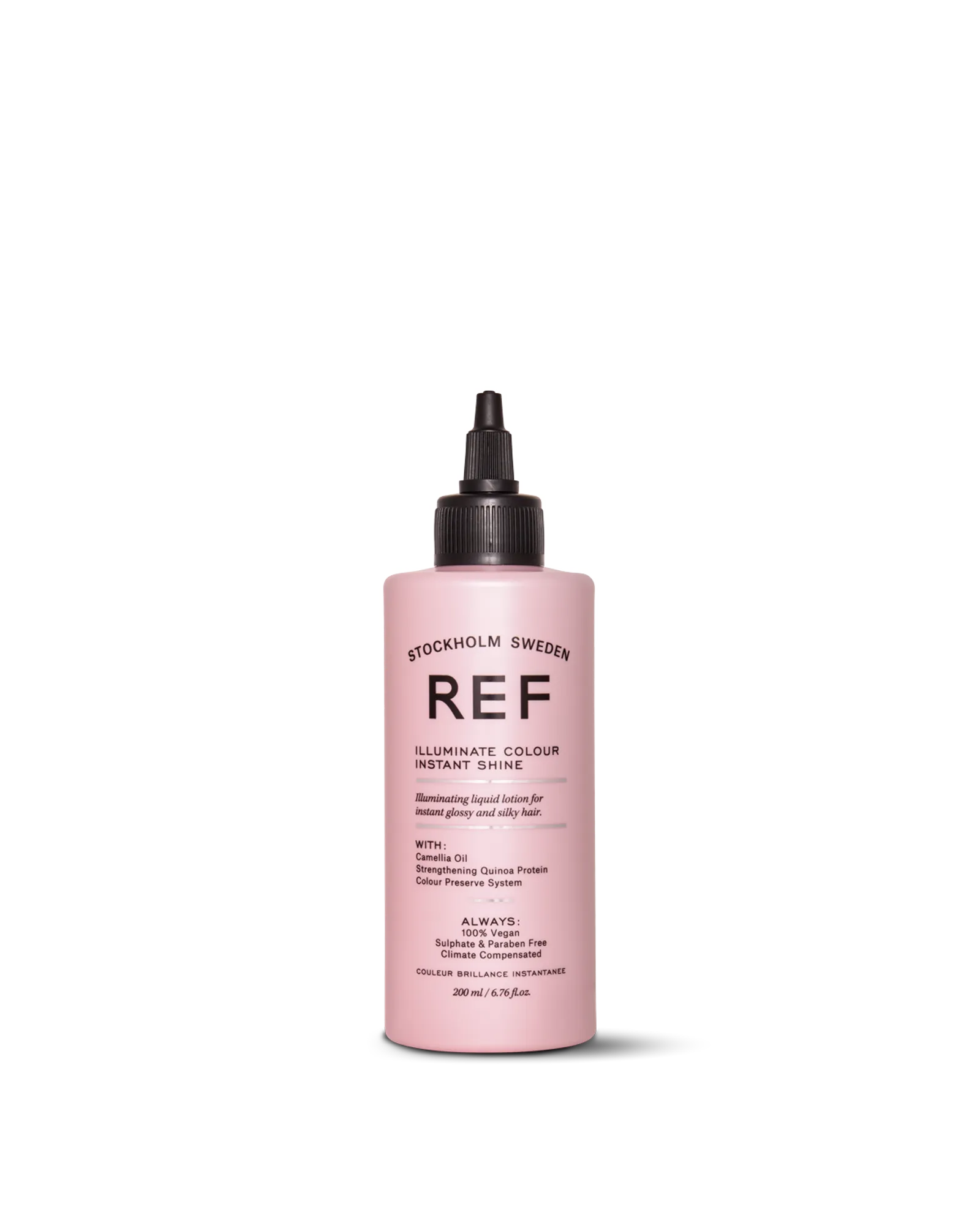 REF Illuminate Colour Instant Shine är en prisbelönt lotion som ger färgat hår omedelbar glans och en livfull, strålande lyster. Med Color Preserve System™ och ekologisk acaiolja fräschar den upp färgens intensitet samtidigt som håret hålls lätt och följsamt. Håret blir mjukt, lätt att styla och full av glans, med en spegelblank finish som framhäver färgens naturliga skönhet.