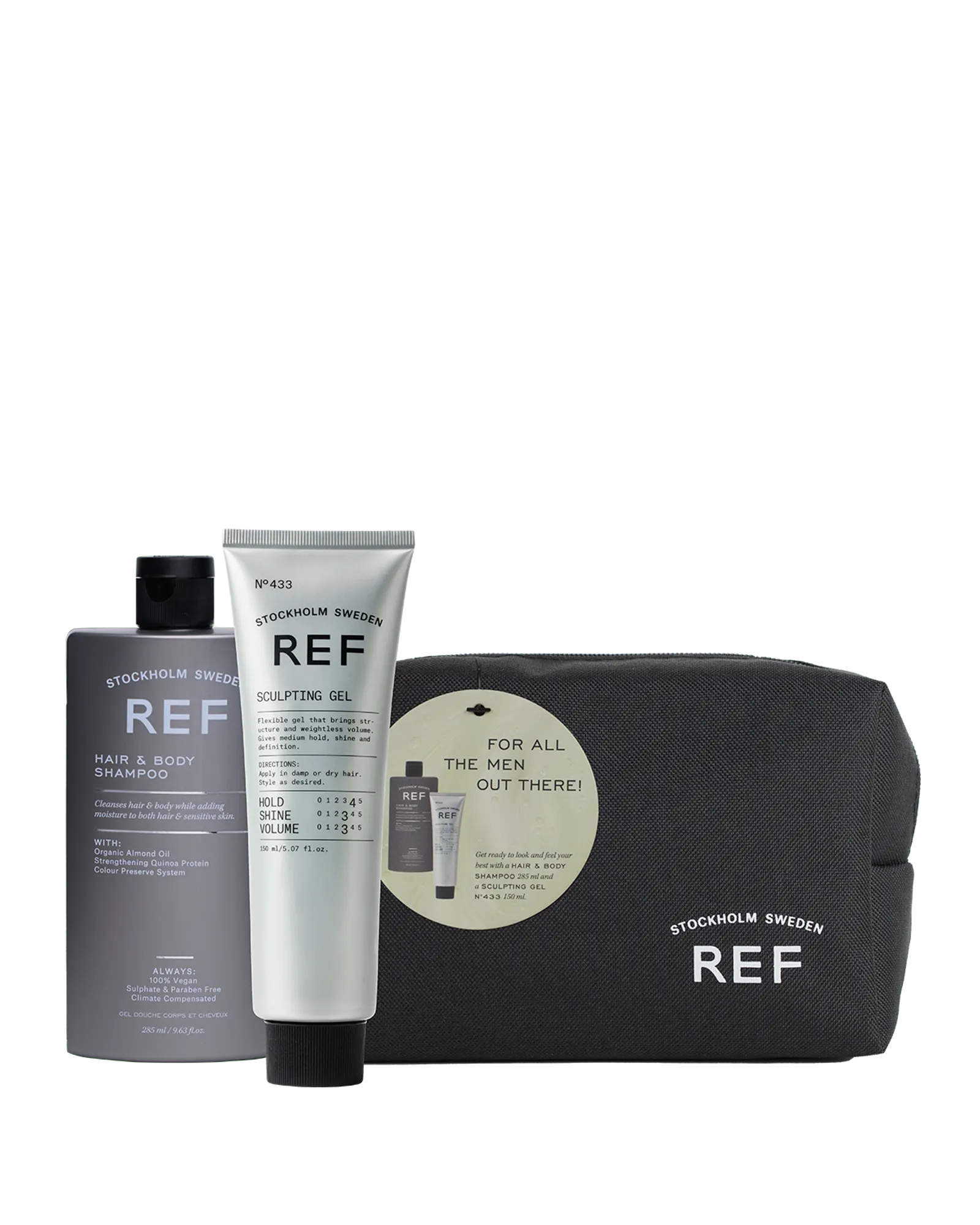 En stilren necessär med den optimala duon för både vård och styling: Hair & Body Shampoo och Sculpting Gel. Hair & Body Shampoo tvättar skonsamt hår och hud och ger en frisk, upplyftande känsla som lägger grunden för resten av din rutin. Med ekologisk kokosolja och aloe vera avlägsnas orenheter samtidigt som huden och håret får lätt återfuktning. Därefter formar Sculpting Gel frisyren med hög stadga och följsam finish, lika passande för släta stilar som för mer texturerade uttryck. Kitet kommer i en necessär som blir en uppskattad gåva och en användbar följeslagare för vardagens essentials.